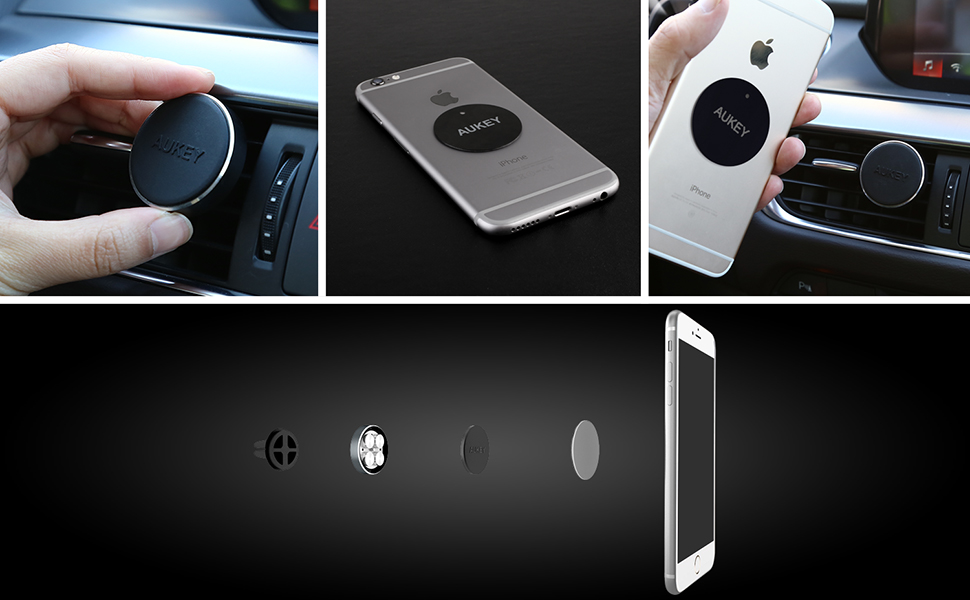 - Package Contents: AUKEY HD-C32 Air Vent Magnetic Phone Mount, Circular Metal Disc, Rectangular Metal Disc