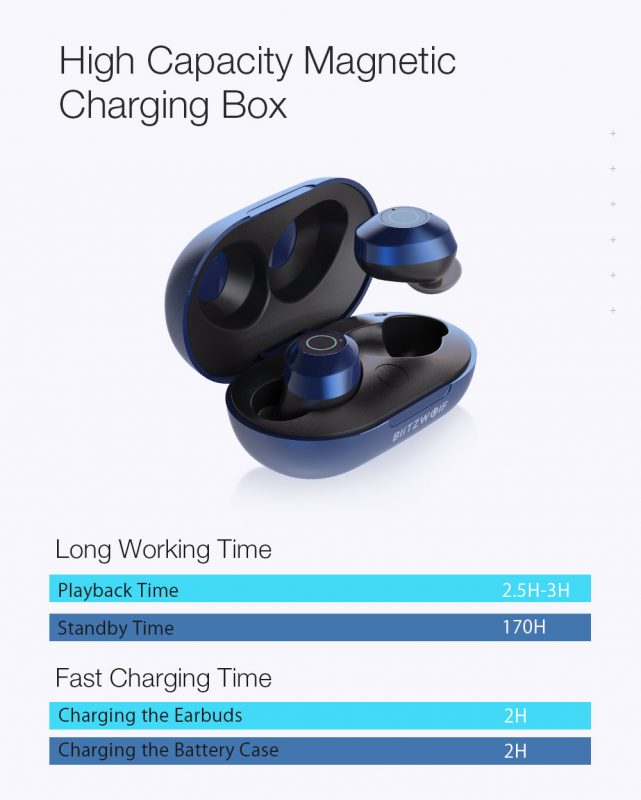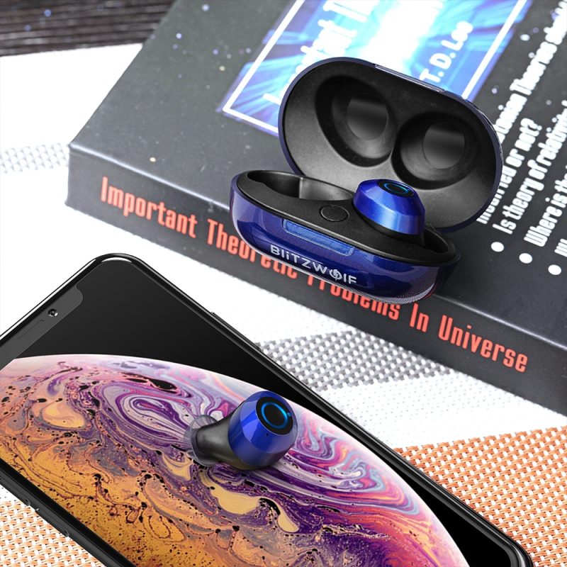 BlitzWolf BWFYE5 Blue Bluetooth V5.0 True Wireless Earbuds with Mini Charging Case, Bilateral Calls, IPX6 Waterproof and Magnetic Absorption